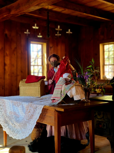 La segunda parada la harás en el Edgeley Mennonite Meeting House. Aquí podrás disfrutar de un encantador cuento infantil con marionetas. No sé si cambian las historias, nosotros tuvimos la oportunidad de disfrutar del cuento de La Caperucita Roja. A los niños les tocó encargarse de los «efectos», tenían que tocar la puerta, hacer los sonidos del lobo cuando corría por el bosque, aullar como él. Fue súper divertido verlos participar en la trama. También aprendimos un poco sobre la historia del cuento y que existen muchísimas versiones, incluidas algunas solo para adultos.