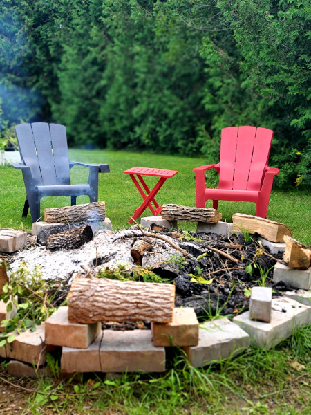 En la parte trasera de la casa, justo al lado del gazebo, hay un área muy acogedora para hacer fogatas. Yo personalmente muero de amor por las fogatas por las noche, es lo que más disfruto cuando, por ejemplo, acampamos en los parques provinciales cerca de casa. Todo el proceso me gusta, acomodar la madera, encender el fuego, las historias y conversaciones luego con los amigos, la risa de los niños, o simplemente quedarme mirando las llamas mientras escucho el sonido de la madera desvaneciendose. Si todo esto lo acompaño con una taza de chocolate caliente…el paraíso,  mi paraíso.