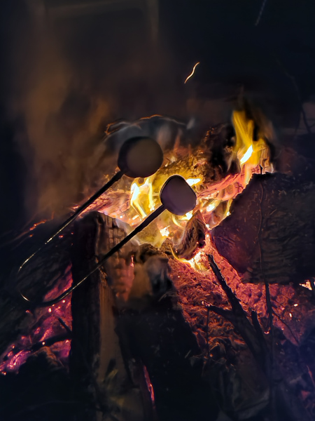 ¿A qué niño (y no tan niño) no le gusta asar malvaviscos en la fogata? Pero, ¿que pasa si se te olvidaron en casa? Otra vez los anfitriones vienen al rescate. Por un precio de 5 CAD te venden un kit para hacer S’mores. Los S’mores son una especie de ¿postre? muy popular en los Estados Unidos y Canadá que consiste en una capa de malvavisco asado y otra capa de chocolate, colocados en forma de sándwich, entre dos galletas. El calor del malvavisco recién sacado del fuego derrite el chocolate y el resultado es delicioso.