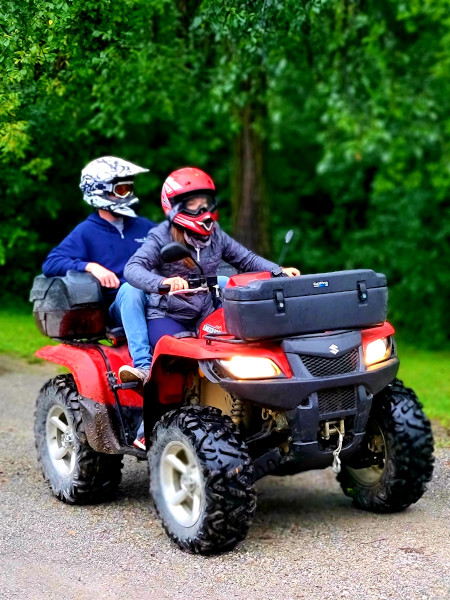 Desde que descubrimos los Airbnb pocas veces nos hemos vuelto a alojar en hoteles. Son varios en los que nos hemos hospedado, tanto en Ontario como en Quebec. Sin embargo, era la primera vez que teníamos la suerte de poder rentar y disfrutar de ATVs en uno. Tenemos que agradecerle a los amigos que nos acompañaban y que se encargaron de cuidarnos a las niñas mientras nosotros recorriamos la propiedad y los alrededores a cuatro ruedas.
