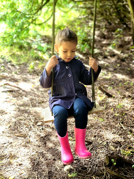 Uno de los aspectos que más me gusta de este Airbnb es el espacio tan grande y seguro que tienen los niños para jugar y explorar. Después de recorrer los senderos en busca de pájaros, insectos, hongos y otras plantas silvestres, tendrán todavía rato de entretenimiento en la caja de arena y en el columpio que se encuentra no muy lejos, entre los árboles. Todo esto mientras son supervisados desde el gazebo ubicado en la parte trasera de la piscina.