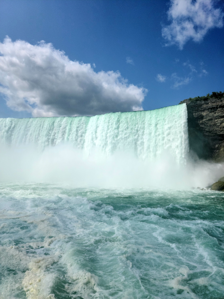 Pasados unos minutos verás como el barco se acerca peligrosamente a Horseshoe Falls y sentirás cómo la adrenalina comienza a recorrer tu cuerpo. Cuando piensas que no es humanamente posible que el barco se acerque más a la base de las cataratas, tranquilo, no pasa nada….. seguirá acercándose 😊. Llega un momento en que tienes que rendirte y dejar de hacer videos y fotografías y guardar la cámara o el teléfono en un bolsillo. Es imposible que sobrevivan a tanta agua cayendo encima.
