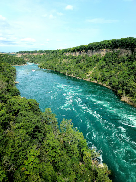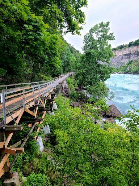 El mismo bordea la orilla del río Niágara y cuenta con varias plataformas de observación desde las cuales podrás disfrutar de la fuerza del río, sus rápidos y las olas de hasta 5 metros de altura. El sendero cuenta además con varios paneles con muchísima información sobre la geología del desfiladero y sobre la vida vegetal y animal que puedes ver en tu visita a los parques del Niágara (Niagara Parks).