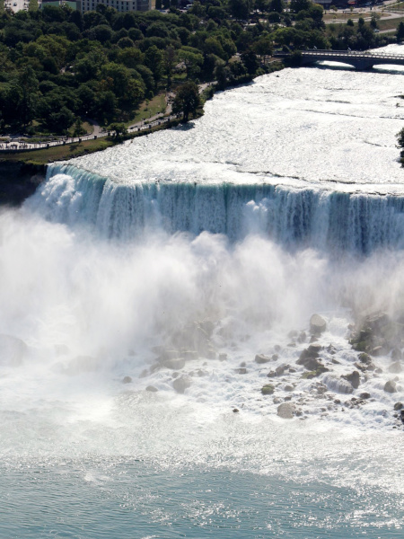 En cierto que las Cataratas del Niágara no son las más altas ni las más anchas pero sí son las que mueven más volumen de agua del mundo. Se estima que entre las tres cataratas cae un promedio de 3 mil toneladas de agua por segundo, realmente impresionante.