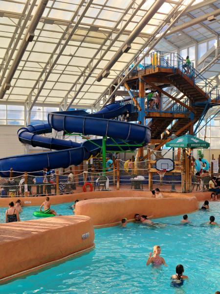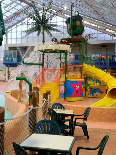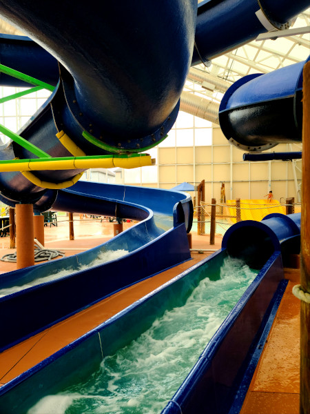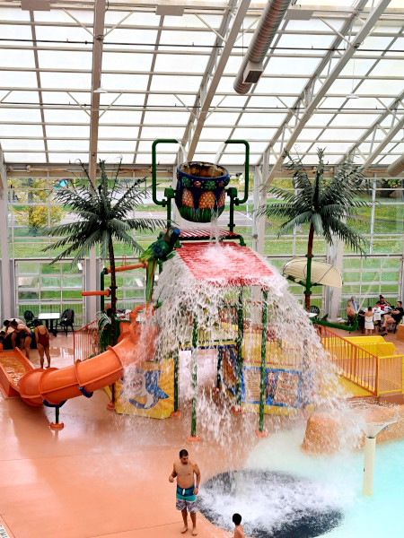 El parque acuático en Americana Conference es el más pequeño de los que hemos visitado en el Niágara. Sin embargo tengo que admitir que es en el que más nos hemos divertido. Es el único parque acuático en la zona que cuenta con un techo retráctil y una estructura de vidrio que inunda el parque de luz natural. Tanto así que tienes la sensación de encontrarte al aire libre. Aquí encontrarás un clima tropical de 29°C durante todo el año.